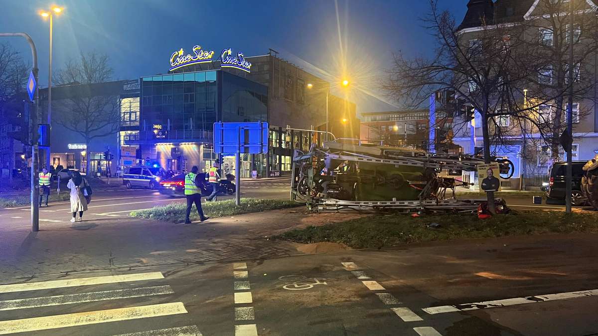 Update from March 12th, 5:44 p.m.: The accident occurred on Thursday (March 12) shortly after 5 p.m. According to initial information, the trailer of a tractor overturned while turning onto Frankfurter Strasse. The trailer had become detached from the towing vehicle in the curve for an unknown reason. Eyewitnesses reported a loud bang.