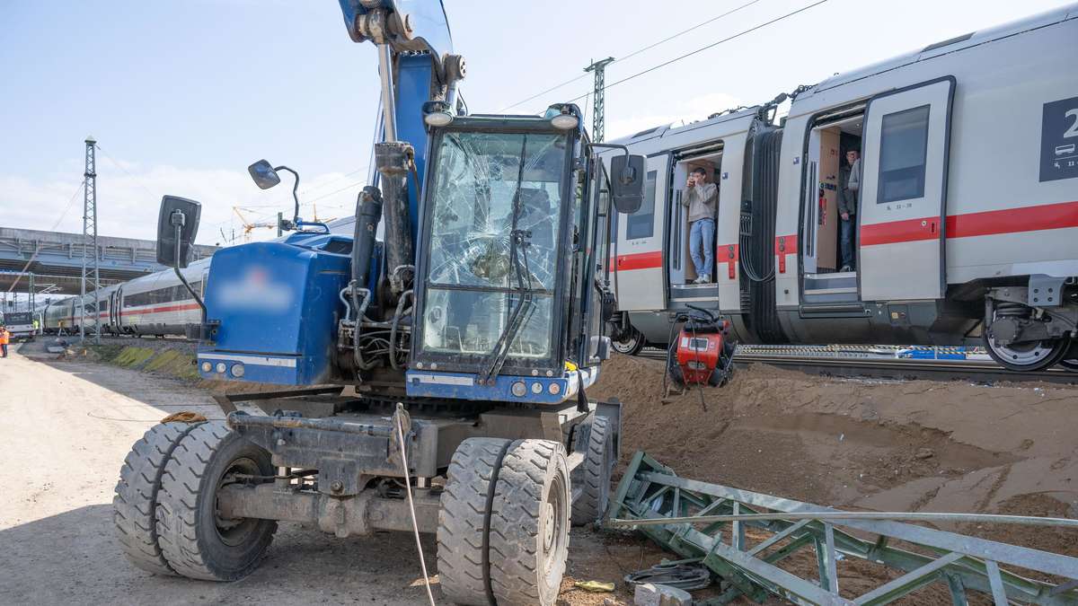 Gelnhausen – An ICE collided with an excavator on the railway line near Gelnhausen on Monday morning (March 23rd). The excavator operator was slightly injured in the accident, but the approximately 650 passengers on board the train were uninjured, the Frankfurt Federal Police Inspectorate announced at midday.
