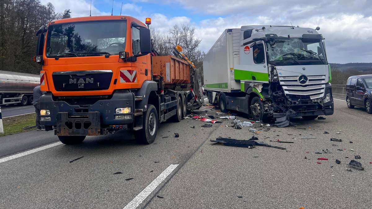 According to the police, the 38-year-old truck driver from Arnstein was slightly injured in the impact, received medical treatment and was then taken to hospital. No other people were injured.