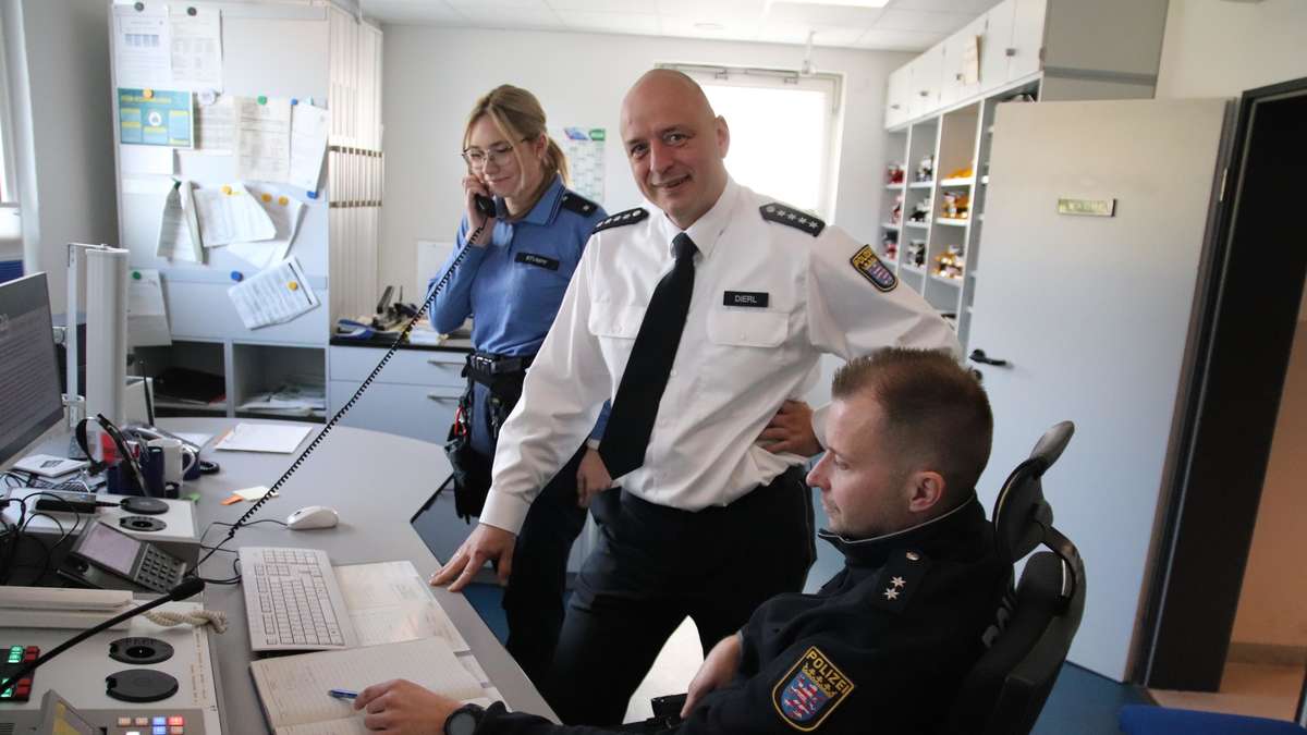 Police Chief Inspector Tilman Dierl (middle) is the new station manager of the Schlüchtern police station - here with two colleagues from his team in the station on Lotichiusstrasse.