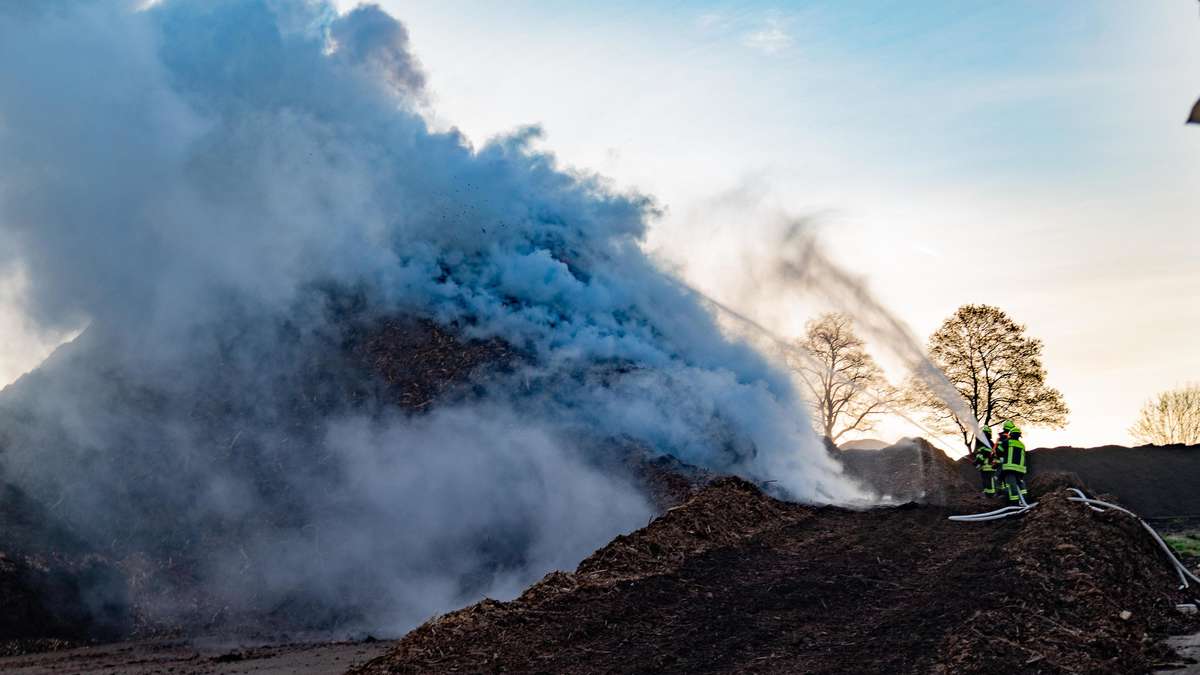 Employees of the affected company supported the extinguishing work by shifting the mulch with two wheel loaders. In the afternoon around 3:49 p.m., the fire department was called again to the same location because the bark mulch had ignited again. Eight emergency services were deployed and were able to quickly bring the fire under control. Again, two of the company's wheel loaders were used to transport the mulch.