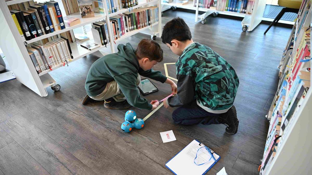 The Hünfeld City Library offered robotics workshops during the Easter holidays. The children were able to control small robots as a team through the respective tasks using a tablet.