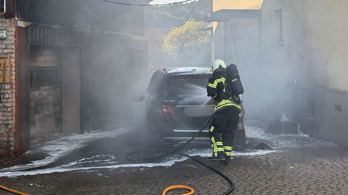 A parked Mercedes caught fire in Kerzell early on Wednesday evening (April 15). The fire spread to an adjacent house and a barn.